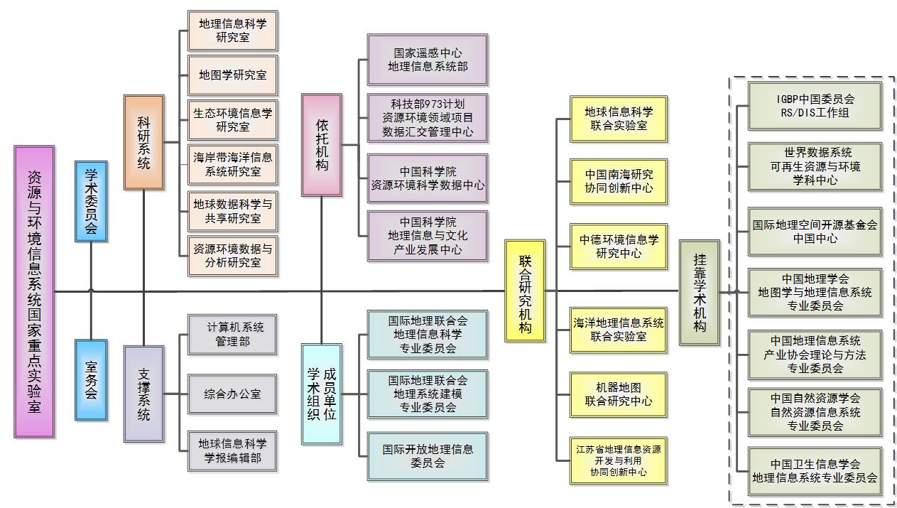 地球信息科學聯合實驗室(與香港中文大學等聯合成立)、海洋地理信息系統聯合實驗室(與中國科學院海洋研究所合作)、機器地圖聯合研究中心(與解放軍信息工程大學合作)、中德環境信息學研究中心(與德國亥姆霍茲聯合會合作)、中國南海 研究協同創新中心(南京大學主持,實驗室、中國南海研究院等單位共同成立)、江蘇省地理信息資源開發與利用協同創新中心(南京師范大學主持,實驗室、國家測繪地理信息局衛星測繪應用中心等單位共同成立)。