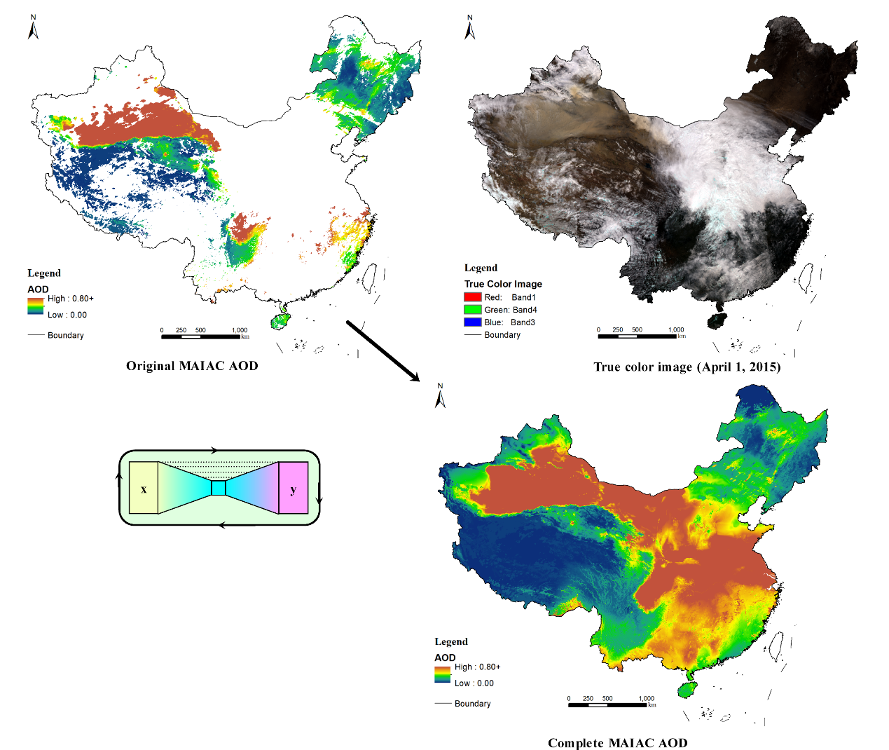3) Lianfa Li, Meredith Franklin, Mariam Girguis et al., 2020, Spatiotemporal Imputation of MAIAC AOD Using Deep Learning with Downscaling, Remote Sensing of Environment, 237, 111584, https://doi.org/10.1016/j.rse.2019.111584