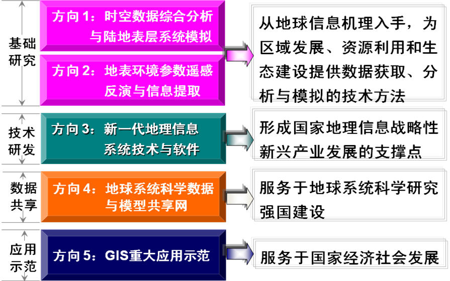 1、形成地球信息科學基礎與應用基礎理論研究、地理信息系統核心技術創新與重大產品研發、基于3S的重大示范應用系統有機融合的學科發展布局;