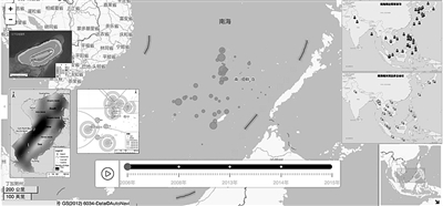 南海及其周邊的地理空間信息獲取、分析及服務是維護地區和平、促進合作共贏、保障運輸通暢、支持“一帶一路”建設的重要技術支撐。為此,中國科學院地理科學與資源研究所聯合南京大學、國家海洋環境預報中心開展空間信息的獲取、組織、分析和服務研究工作,突破了大范圍多源信息集成、空間態勢評估、立體通達分析、實時網絡信息萃取和按需推送等關鍵技術,發展了面向服務的大數據集成分析與服務能力。在搜集、整理、分析、處理南海相關資料的基礎上,建立了面向專題的服務架構及各種空間分析模型,利用繁雜浩瀚的網絡資源先后實現了南海周邊專題地圖、南海相關雙邊多邊會議專題地圖,構建了南海空間情勢綜合分析與模擬平臺。與此同時結合艱苦的實地調查和遙感驗證等工作,生成了目前最新最全的南海島礁地貌系列數據,在此基礎上,構建了島礁關鍵信息提取模型,形成了系列建議。
