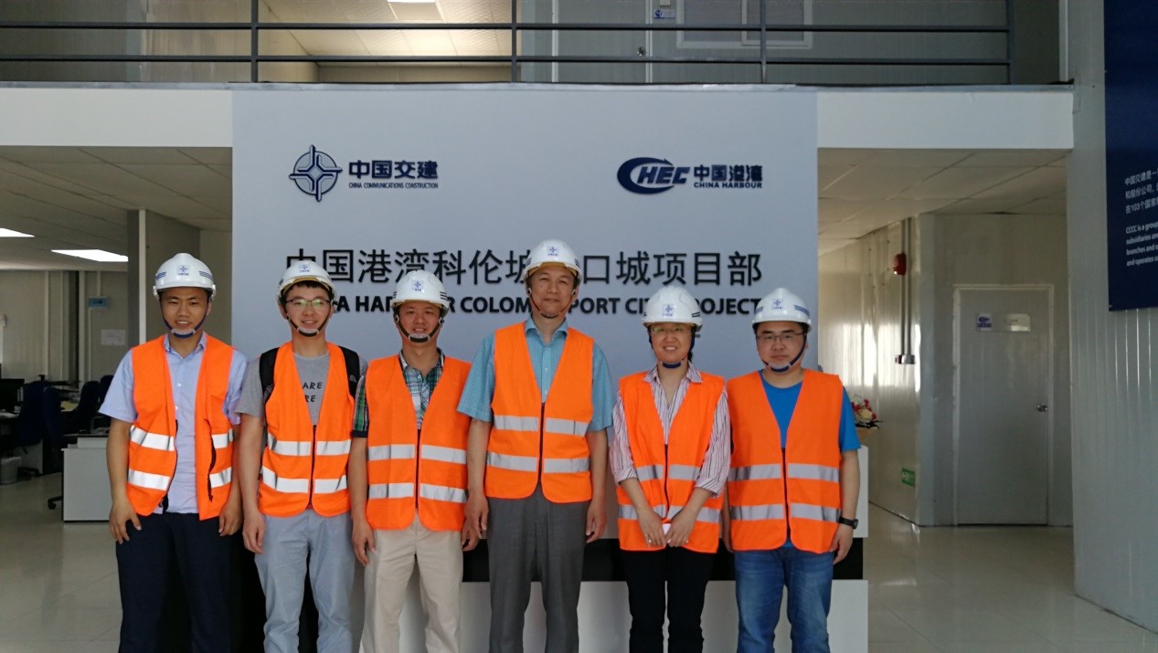 4月22日,項目組應邀前往中國港灣集團科倫坡港口城項目部與建設工地,與中-斯兩地的工程師進行了座談與討論。