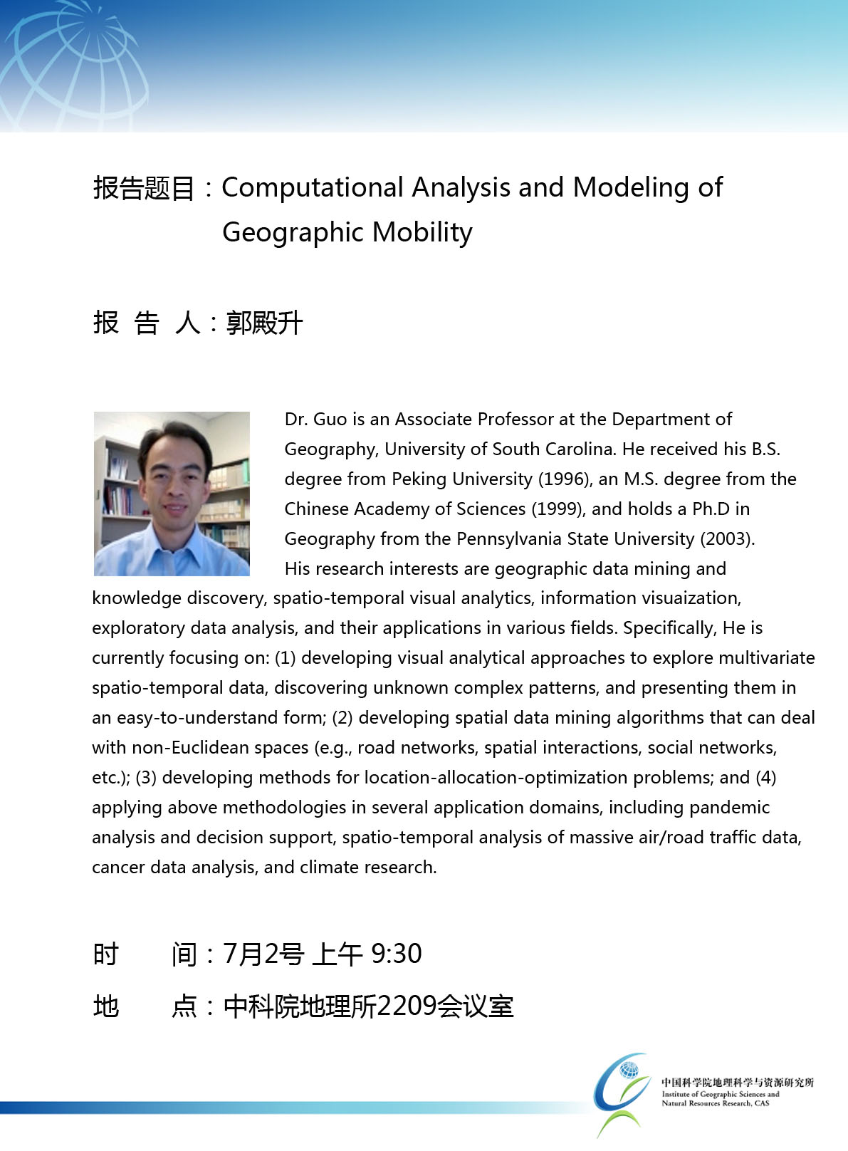 報告人:郭殿升,美國南卡羅來納大學 地理系副教授