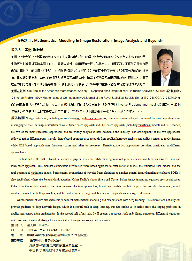 學術報告報告題目:Mathematical Modeling in Image Restoration, Image Analysis and Beyond