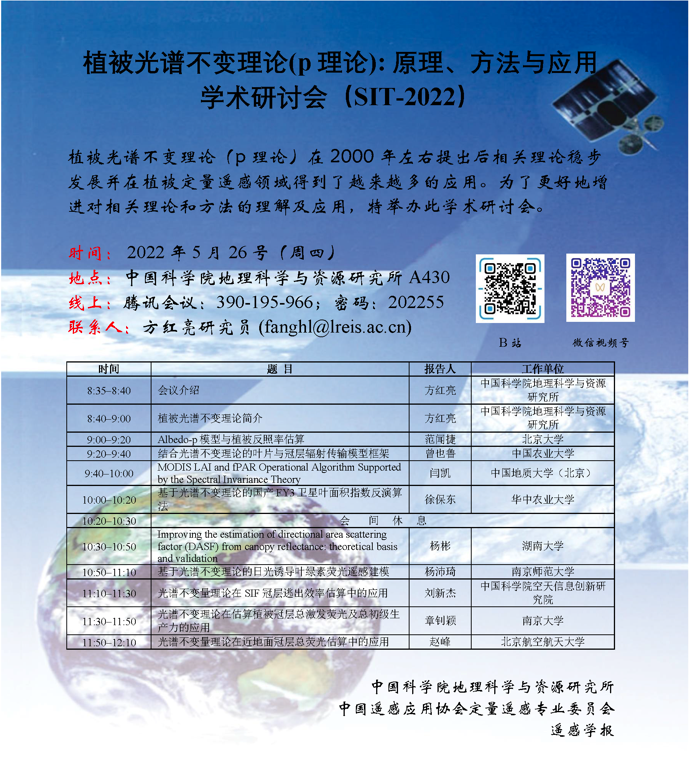 植被光譜不變理論(p理論): 原理、方法與應用 學術研討會(SIT-2022)