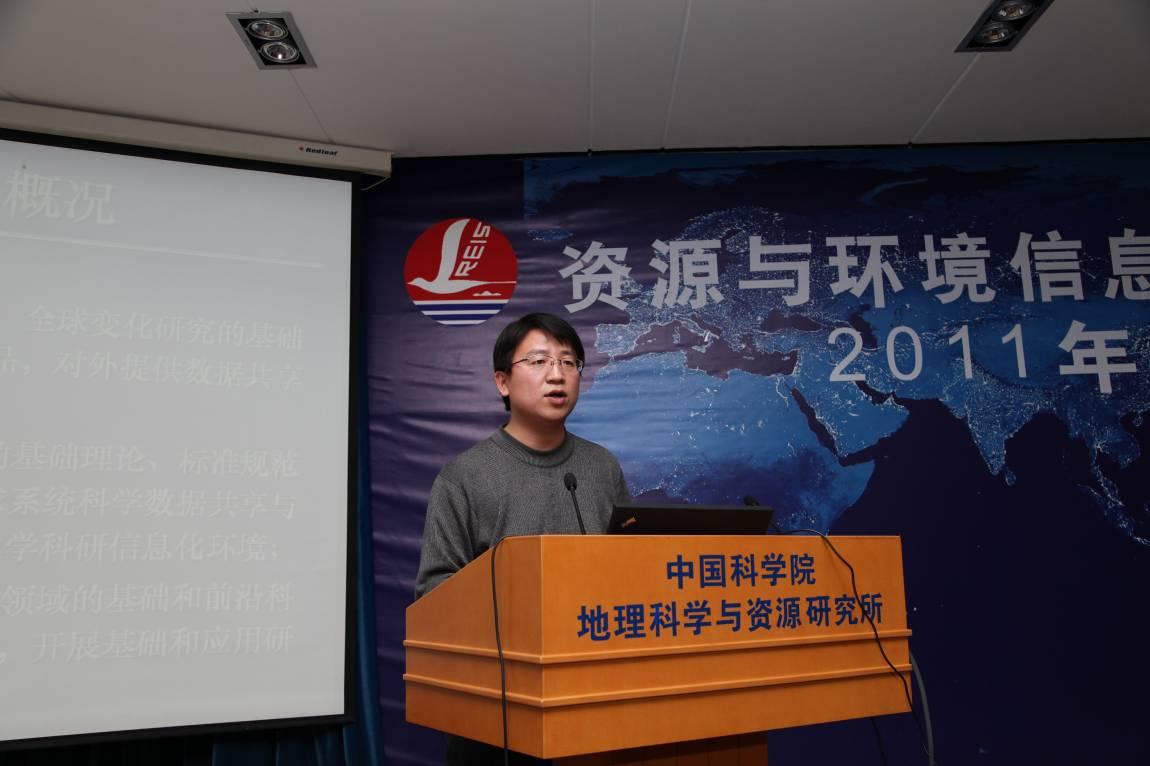 然后,實驗室所屬6個研究室的主任分別介紹了2011年度各研究室科研進展和科研成果。劉高煥研究員代表地理空間分析與系統模擬研究室從總體估算方法及在疾病監測中的應用、高精度曲面模擬應用、平緩區土壤屬性新環境變量空間推測及應用、泛在網絡信息搜索與軌跡數據挖掘、任意形狀的空間叢聚區域挖掘方法、山體效應定量化研究和太湖流域水質目標管理系統建設等方面介紹了研究進展和成果;陳榮國研究員代表地理信息技術與應用研究室從地理空間數據庫技術、海洋信息網絡技術、空間信息網格服務與應用、全國土壤環境質量圖集編制等方面介紹了研究進展和成果。葛詠研究員代表遙感地學分析與計算研究室從地表參數遙感定量反演、遙感定量產品驗證、高精度雷達干涉測量監測、遙感數據質量評價和高分辨率遙感智能計算等方面介紹了研究進展和成果;王英杰研究員代表地圖學研究室從自適應地圖可視化、地貌和月貌信息提取與制圖、數字地圖的理論與應用、網絡制圖平臺模式、空間可視化技術、地學信息可視化軟件平臺體系等方面介紹了研究進展和成果。江東副研究員代表資源環境科學數據中心從國家電子政務建設、環境與災害監測與環境小衛星生態環境遙感應用等方面介紹了研究進展和成果。王卷樂副研究員代表地球系統科學信息共享中心從973計劃資源環境領域數據匯交、地球系統科學數據共享平臺、中國北方及其毗鄰地區綜合科學考察、全球土地覆蓋數據分析與融合、遙感反演、環保檔案信息資源共享關鍵技術和新一代集成陸面過程模型的發展及其典型應用等方面介紹了研究進展和成果。
