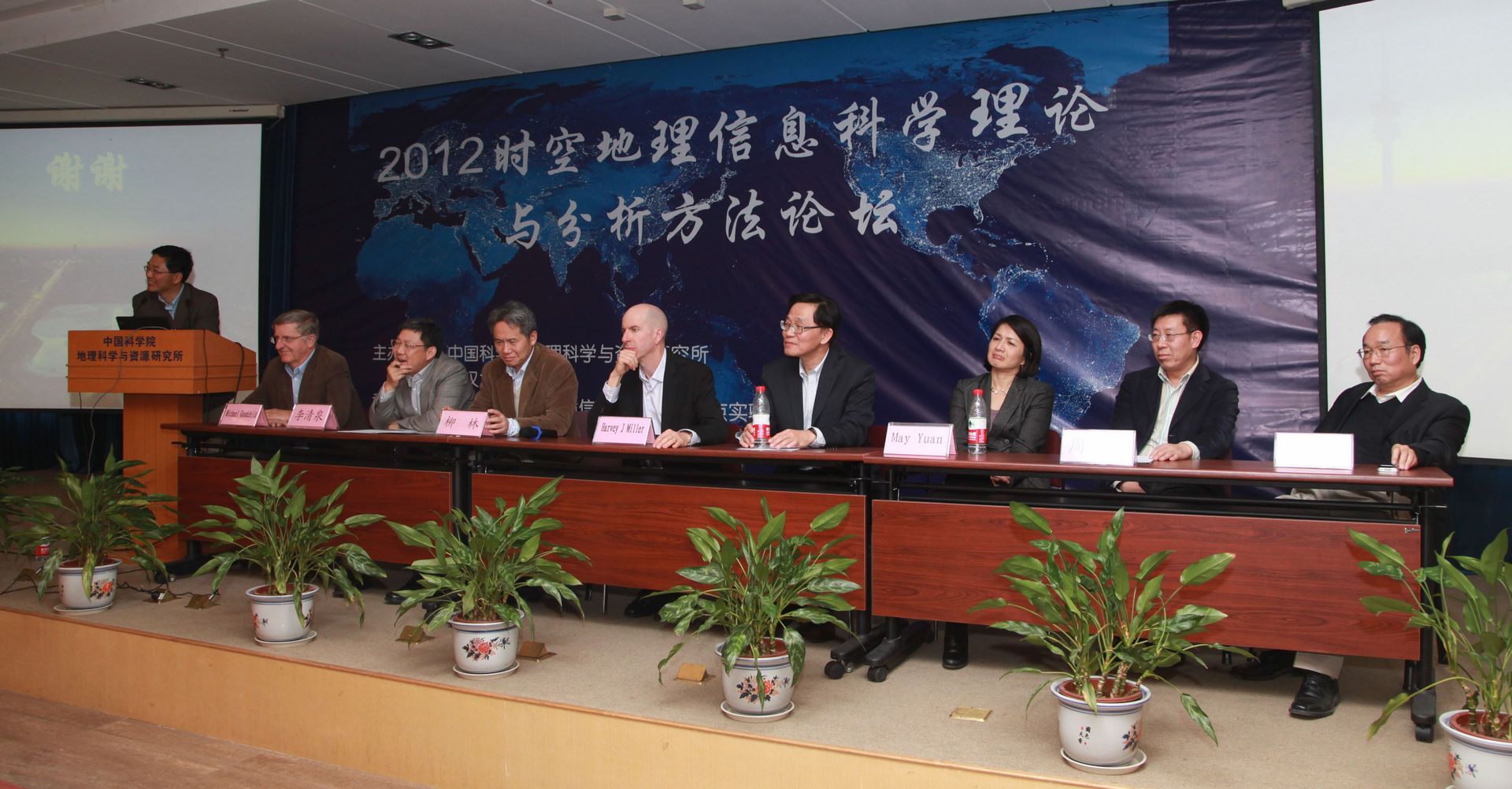 11月13日上午舉行了論壇的開幕式和論壇學術報告。開幕式由中國科學院地理科學與資源研究所副所長周成虎研究員主持,深圳大學校長李清泉教授,中科院資環局項目主管趙濤博士出席了開幕式并致辭。隨后進行的論壇特邀報告由美國田納西大學杰出教授Shih-Lung Shaw主持,應論壇組織委員會邀請,美國科學院院士、美國加州大學資深教授Michael F. Goodchild、俄亥俄州立大學特聘教授Daniel Sui、測繪遙感信息工程國家重點實驗室常務副主任陳軍教授和中山大學地理科學與規劃學院院長柳林教授分別于上午就“時空綜合分析”、“時空協同:實現空間地理信息科學的范式轉變”、“土地覆被和信息服務中的時空問題”、“實時GIS”等問題作了特邀報告。來自俄克拉荷馬大學教授May Yuan、猶他州立大學地理系教授Harvey J. Miller、美國田納西大學杰出教授Shih-Lung Shaw、深圳大學校長李清泉教授、超圖董事長鐘耳順以及中國科學院地理科學與資源研究所副所長周成虎研究員也在下午給與會師生提供了多場精彩紛呈的報告,報告內容包括“描述與時空分析”、“多模態世界中的時空地理信息科學”、“浮動車數據的時空分析方法”、“生活中的地理信息系統技術”和“如何有機整合GIS中的時間和空間信息”,下午的學術報告由Daniel Sui教授主持。