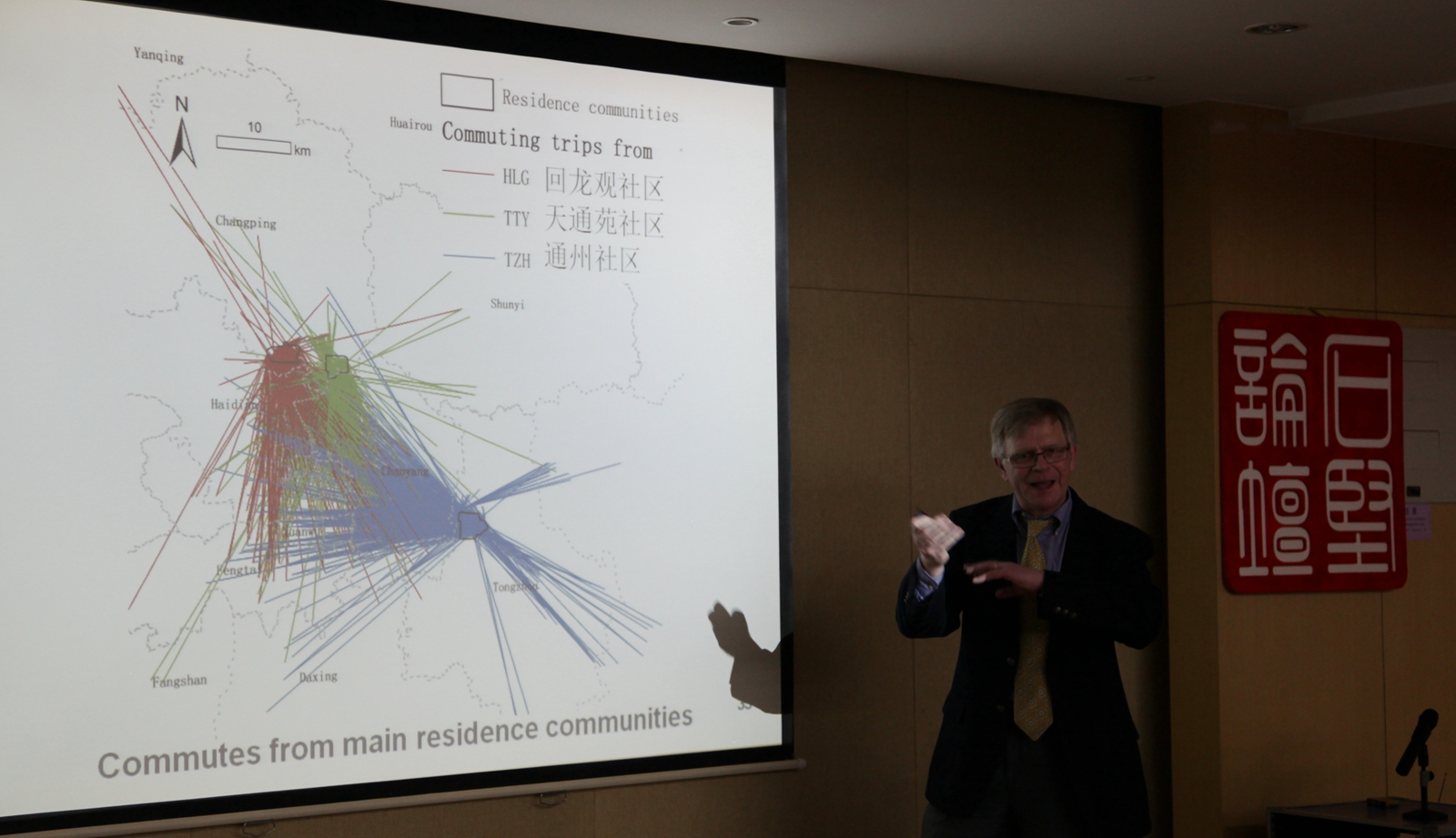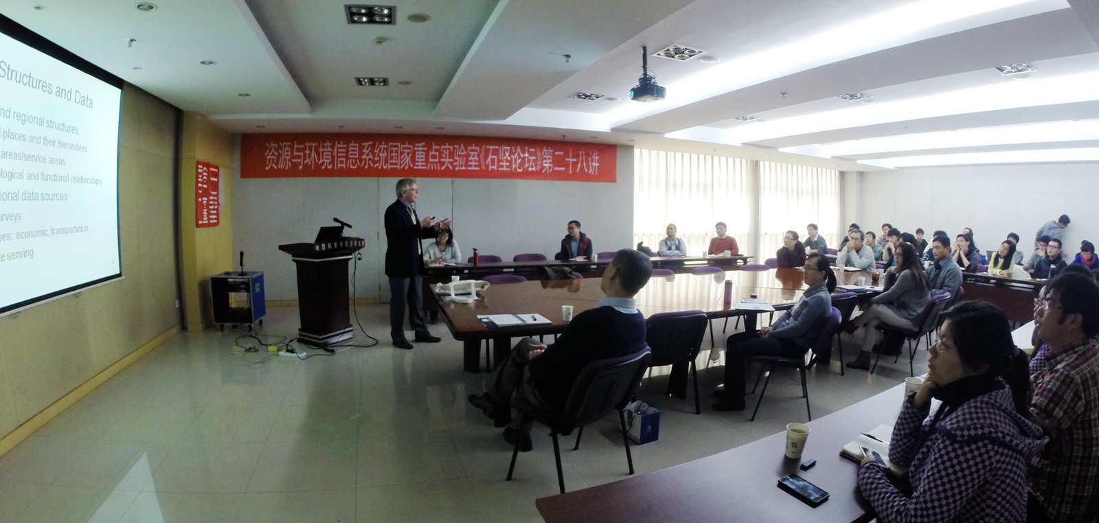 2015年1月22日下午,資源與環(huán)境信息系統(tǒng)國家重點實驗室石堅論壇第28講順利舉行。應(yīng)陸鋒研究員邀請,美國北卡羅萊納大學(xué)的Jean-Claude Thill 教授來訪地理科學(xué)與資源研究所,并做了題為“Uncovering Spatial Structures in Urban and Regional Systems from Communication and Transportation Big Data: Two Case Studies”的精彩報告,重點闡述了社會行為大數(shù)據(jù)的空間分析,并北京公交卡(SCD)數(shù)據(jù)和黑龍江手機使用數(shù)據(jù)兩個研究案例進行詳細講解。 Jean-Claude Thill教授是美國北卡羅萊納大學(xué)地理和地球科學(xué)系公共政策專業(yè)奈特基金會特聘教授,目前的主要研究領(lǐng)域為社會經(jīng)濟問題的空間維度探究,尤其關(guān)注交通及移動系統(tǒng)的相互作用、城市土地利用、城市形態(tài)和功能。Jean-Claude Thill教授有120多篇學(xué)術(shù)論文,獲得過多項學(xué)術(shù)榮譽。如今,Thill教授擔(dān)任Computers, Environment and Urban Systems,雜志的主編,同時是其他地理學(xué)、地理信息科學(xué)、區(qū)域科學(xué)及空間規(guī)劃等雜志的編委會成員。大數(shù)據(jù)挖掘是當(dāng)前的研究熱點。手機、GPS、SNS、WIFI等移動通訊技術(shù)及設(shè)備的快速發(fā)展,促生了大量具有時空特征的信息,有助于描述和理解城市人口動態(tài)及城市功能結(jié)構(gòu)。本次討論,Jean-Claude Thill教授講述了兩個研究案例。案例一針對北京公交卡數(shù)據(jù)(SCD)的探究,通過對850萬人8000萬條記錄的統(tǒng)計分析,總結(jié)北京居民就業(yè)地-居住地分布及居民通勤出行行為特征。案例二使用黑龍江省的手機通話數(shù)據(jù),從中介中心性和社區(qū)的角度探究社交網(wǎng)絡(luò)的特點。