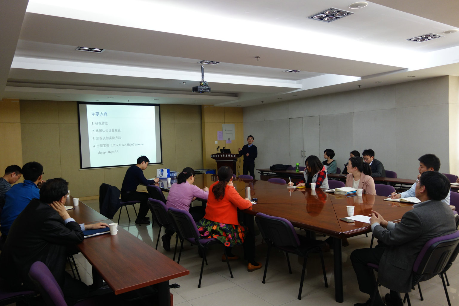 3月30日下午,中國科學院地理科學與資源研究所資源與環境信息系統國家重點實驗室地圖學研究室主辦的“地圖青年學術沙龍”第二期在所2321會議室順利舉行。本期沙龍邀請了北京師范大學地理學與遙感科學學院的董衛華副教授報告交流,資源與環境信息系統國家重點實驗室主任周成虎院士、副主任王英杰研究員、地圖室主任葛詠研究員及30余位科研人員和研究生參與了此次沙龍活動,沙龍由地圖室李洪省博士主持。 報告題目為《地圖認知計算:概念、方法與應用》,主要是圍繞地理大數據背景下地圖認知計算相關研究,具體包括地圖視覺認知機理、地圖認知計算概念框架、定量模型與實驗方法等內容,并討論了基于眼動追蹤的交互式地圖閱讀、二維地圖和二三維一體化的地圖認知差異、基于眼動和格式塔試驗的南海地圖設計與可用性評價等應用案例,并對未來地理大數據可視化設計面臨的挑戰展開了深入探討。與會人員就共同關心的話題展開了廣泛討論,深入交流了當前大數據背景下地圖作為地理學語言和地理學家工具的本質屬性,地理知識的有效可視化和交互手段與地圖認知論的相關話題。本次沙龍的成功舉辦對提升我所地圖學研究的理論水平和學科建設有著重要的促進,也為下一步雙方開展實質性的合作奠定了基礎。