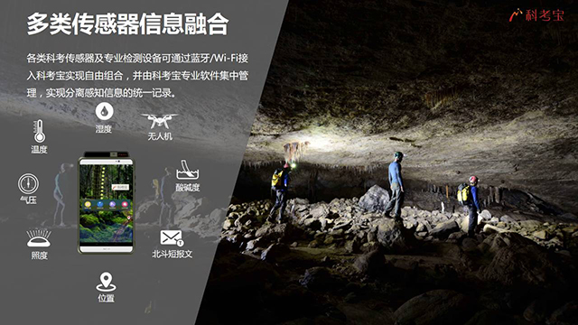 各類科考傳感器及專業檢測設備可通過藍牙/Wi-Fi接入科考寶實現自由組合,并由科考寶專業軟)件集中管理,實現分離感知信息的統一記錄。